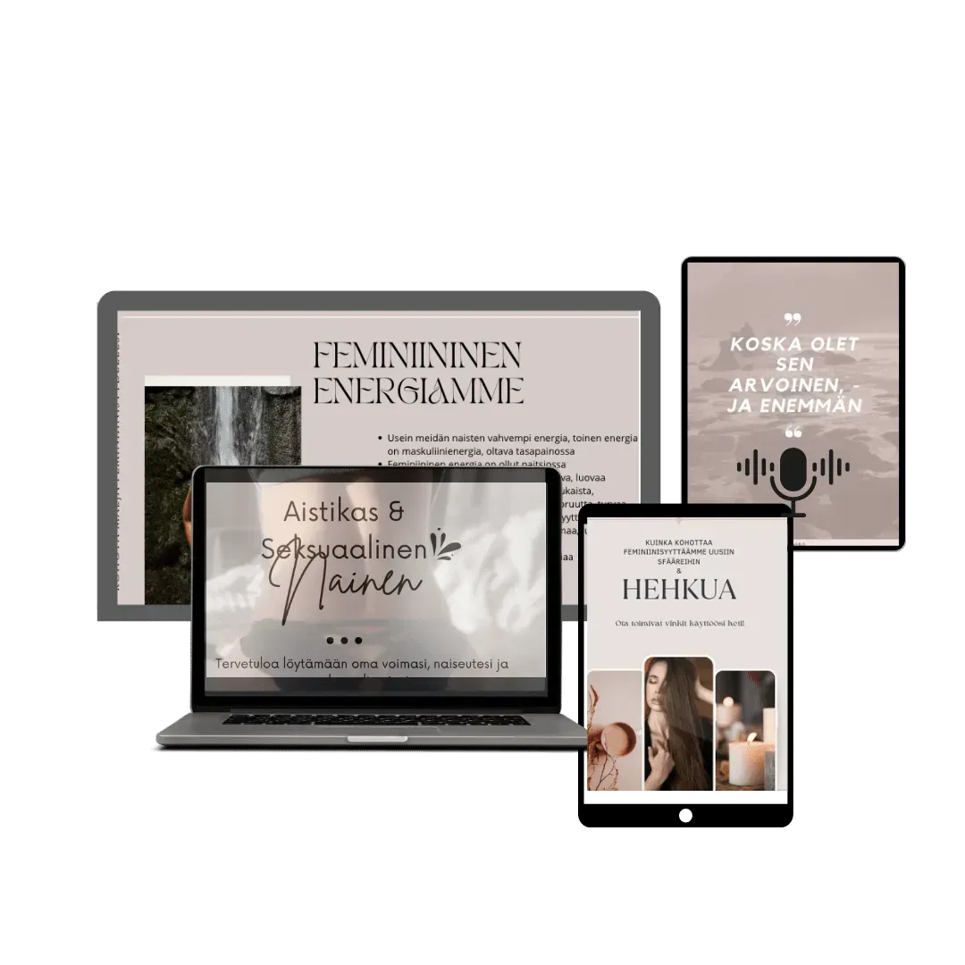 Tästä sinulle pääsy nopeasti ja vaivattomasti tietoon, joka antaa näkökulmia naiseuteesi ja auttaa sinua ottamaan askeleita kohti aistikkuuttasi ja tasapainoisempaa, iloisempaa elämää.